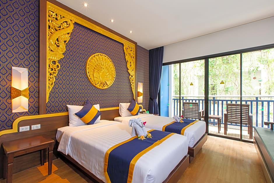 SUPERIOR ROYAL BLUE WING is 388 square feet and includes either a king-size bed 150-183 width or 2 single beds 80-130 width plus balcony, desk, cable tv, hairdryer, tea and coffee making facilities , safe, and slippers.